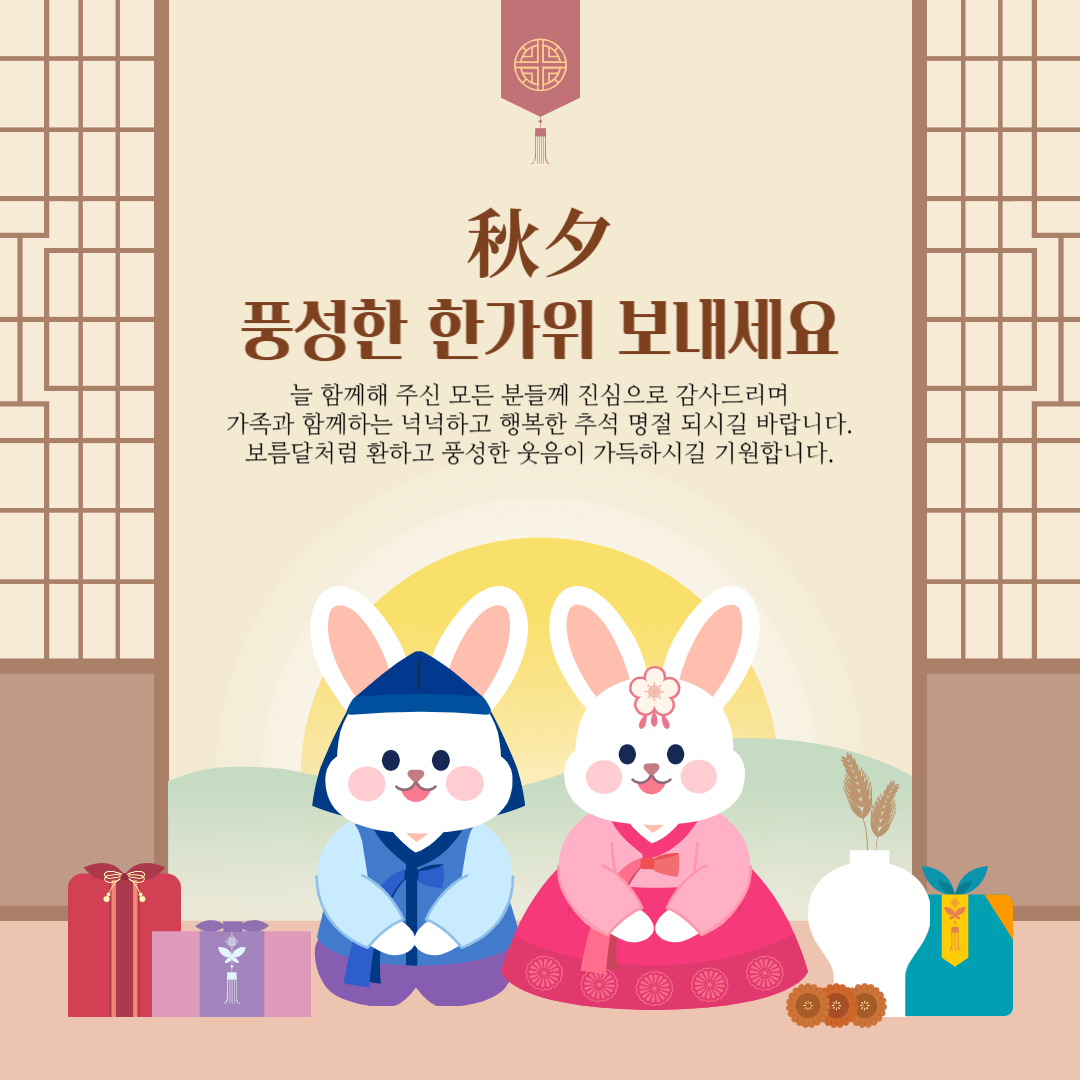 2. 보름달처럼 밝은 한가위 되시길 바랍니다. 항상 감사드립니다.