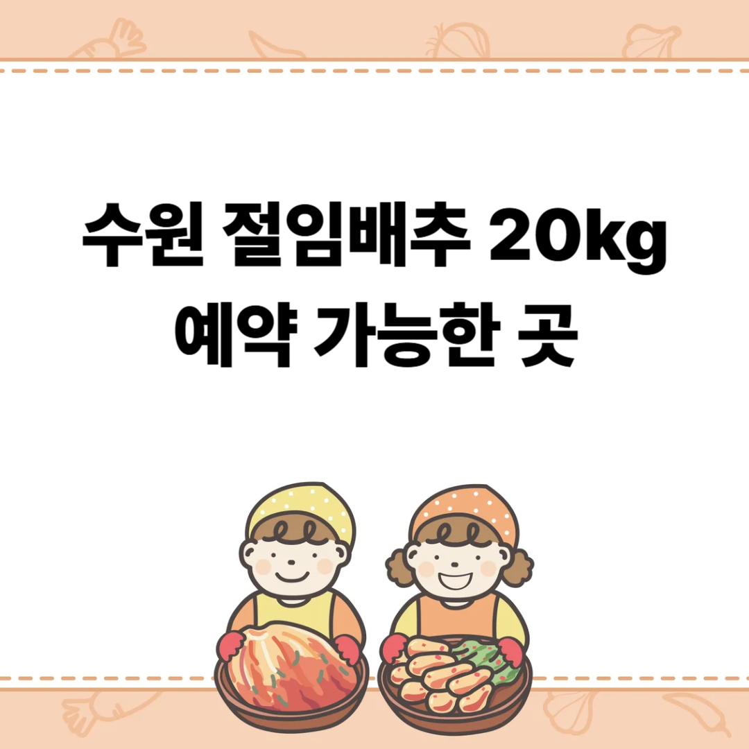 수원에서 절임배추 20kg을 예약하려는 분들을 위해 예약 가능한 경로, 가격·후기 체크포인트, 택배/직접수령 비교와 공동구매 팁을 한 번에 정리했습니다. 아래 카드형 섹션을 따라가며 바로 예약·문의까지 진행하세요.